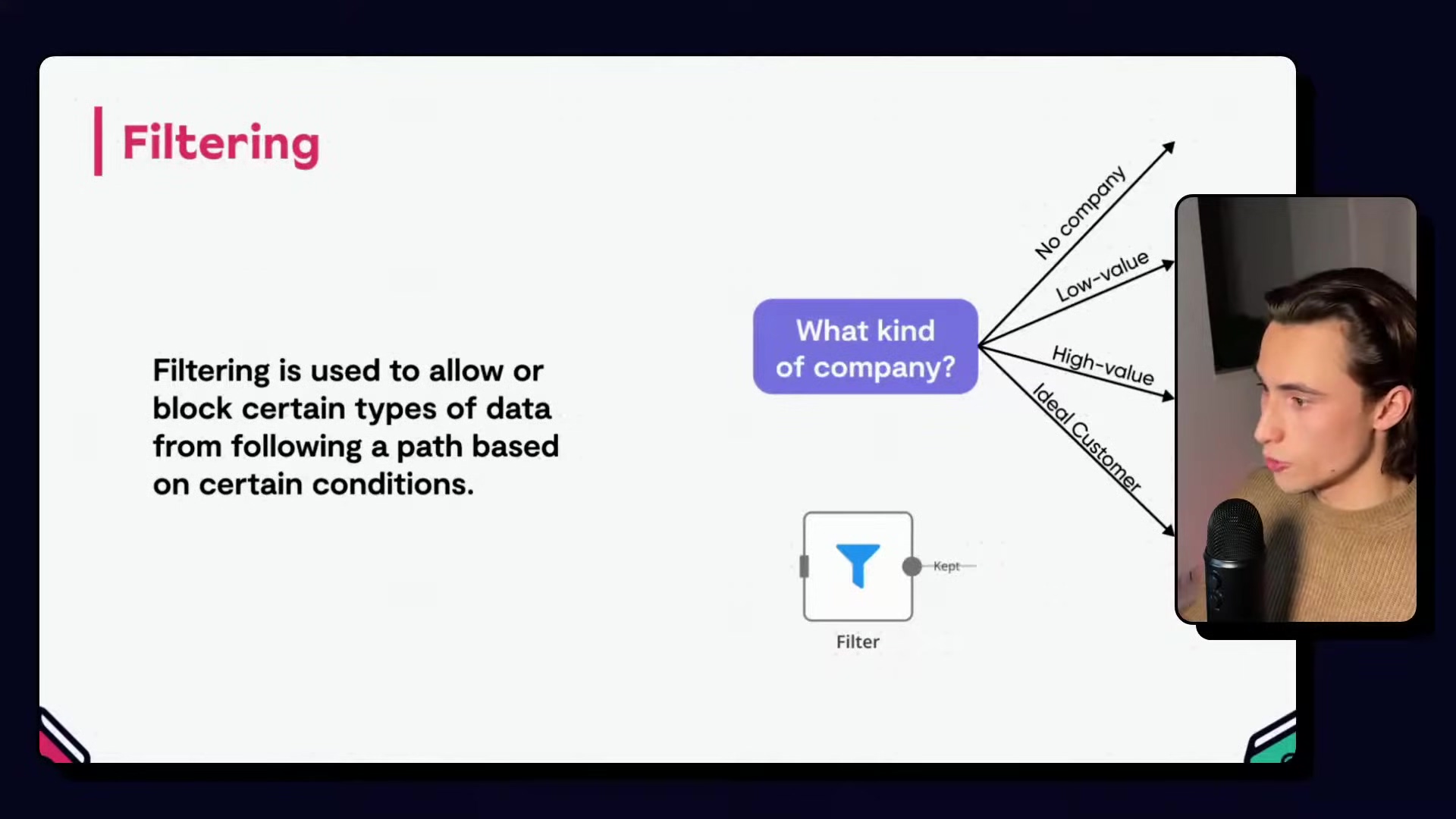 过滤阶段允许工作流根据特定条件对数据进行分类、筛选、格式化或转换,从而决定数据流向何处。这是实现自动化“智能”和“决策”的关键环节。