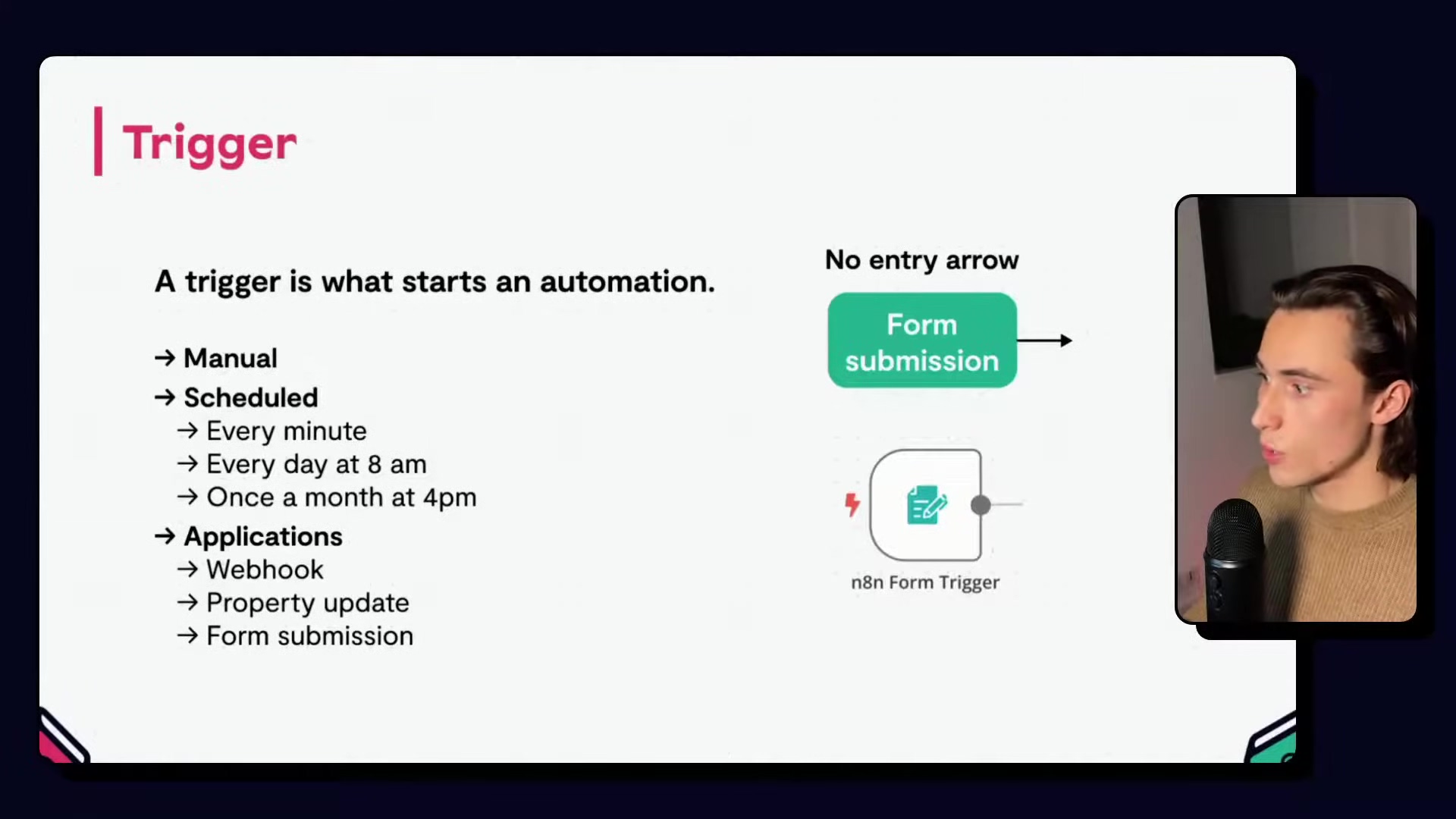 触发器是启动自动化工作流的第一个节点,它定义了何时开始执行一系列动作。一个工作流只能有一个触发器,且它没有入口箭头,只有出口箭头。
