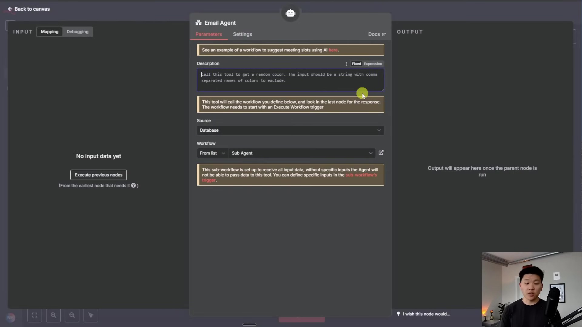Let's walk through the process of setting up a simple orchestrator agent that can call on a sub-agent in n8n.